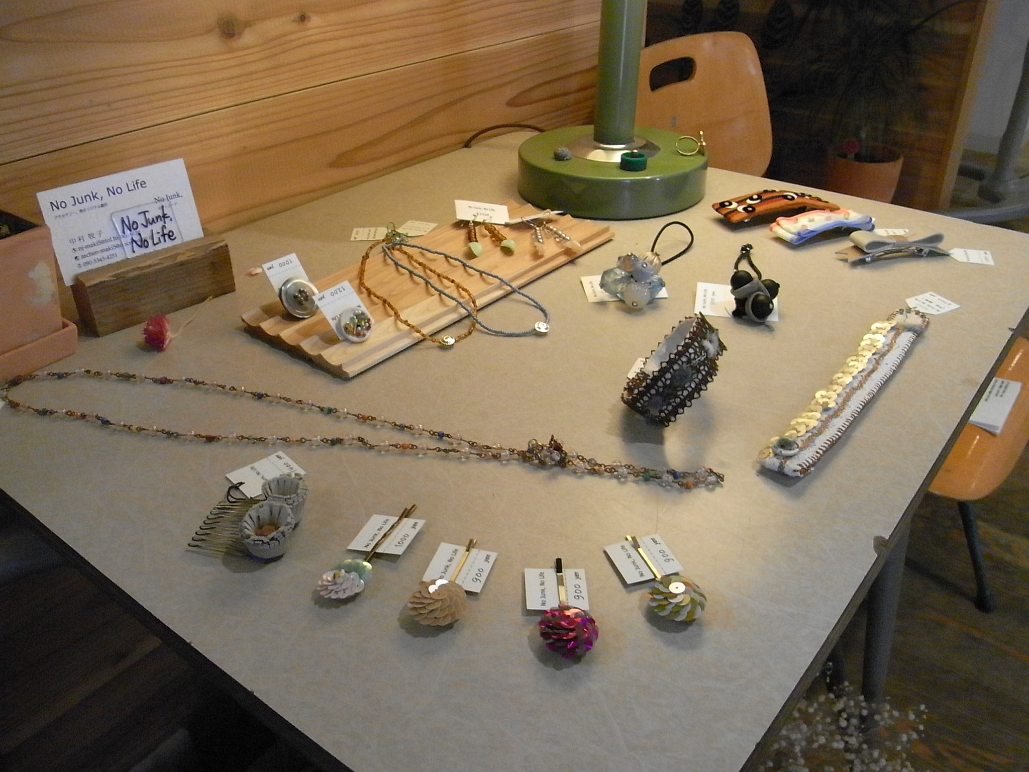 2010 年 7 月 2 日 by re_nco いつも素敵なヘアアクセサリーを作ってきてくださる「No Junk.No life」の中村さんから、夏に向けた新作の第一弾が届きました。 真夏に入る前に、第二弾も到着する予定です。(よろしくお願いします!笑) 今回、4月のイベントで大好評だったアクセサリーもリクエスト。きれいにディスプレイしていただきました! ぜひお手にとってごらん下さい!