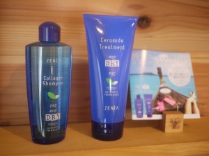 お店においてあるコラーゲンシャンプーとセラミドトリートメントのクールバージョンです。