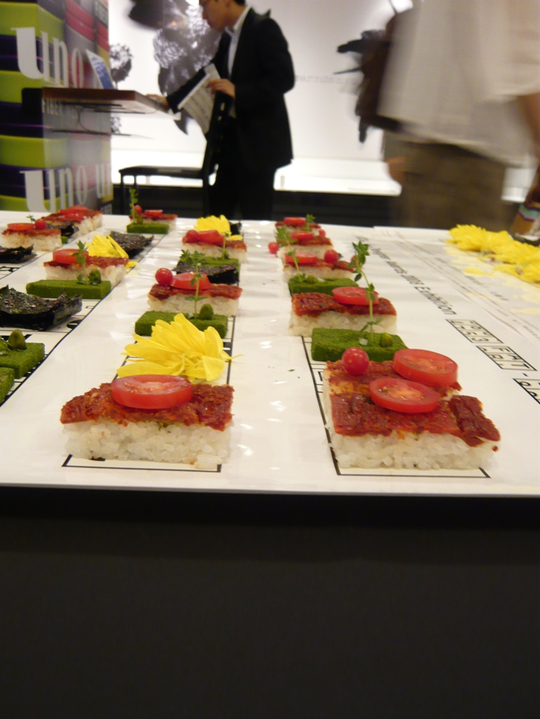 オープニングイベントに参加させて頂いたのですが、雨の中たくさんの人が見に来ていました。さすがにデザイン業界の世界は華やかな雰囲気で、素敵な方々が集まっていました。