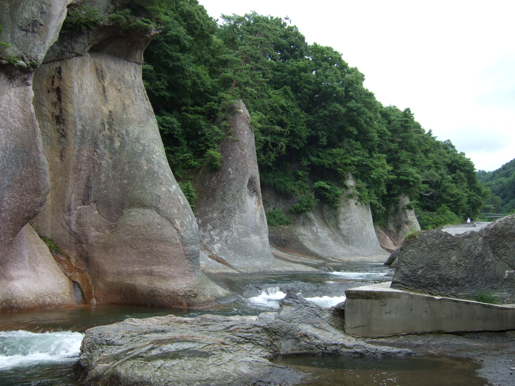 車道から滝への入り口に入るとものの5分くらいでこんな景色に。渓流沿いにできた遊歩道を歩いて行きます。