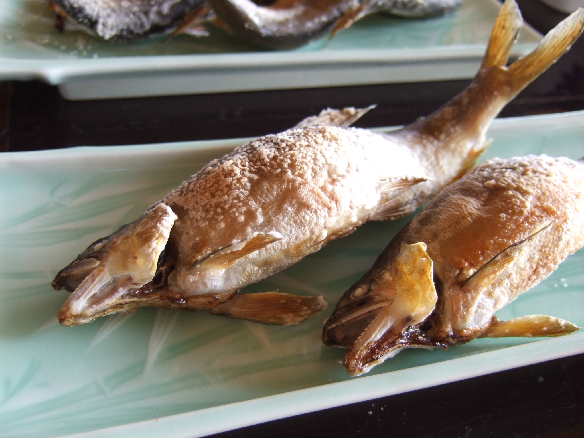 お待ちかねの鮎!あつあつでおいしかったです。9月には子持ち鮎が食べられるそうですよ~!
