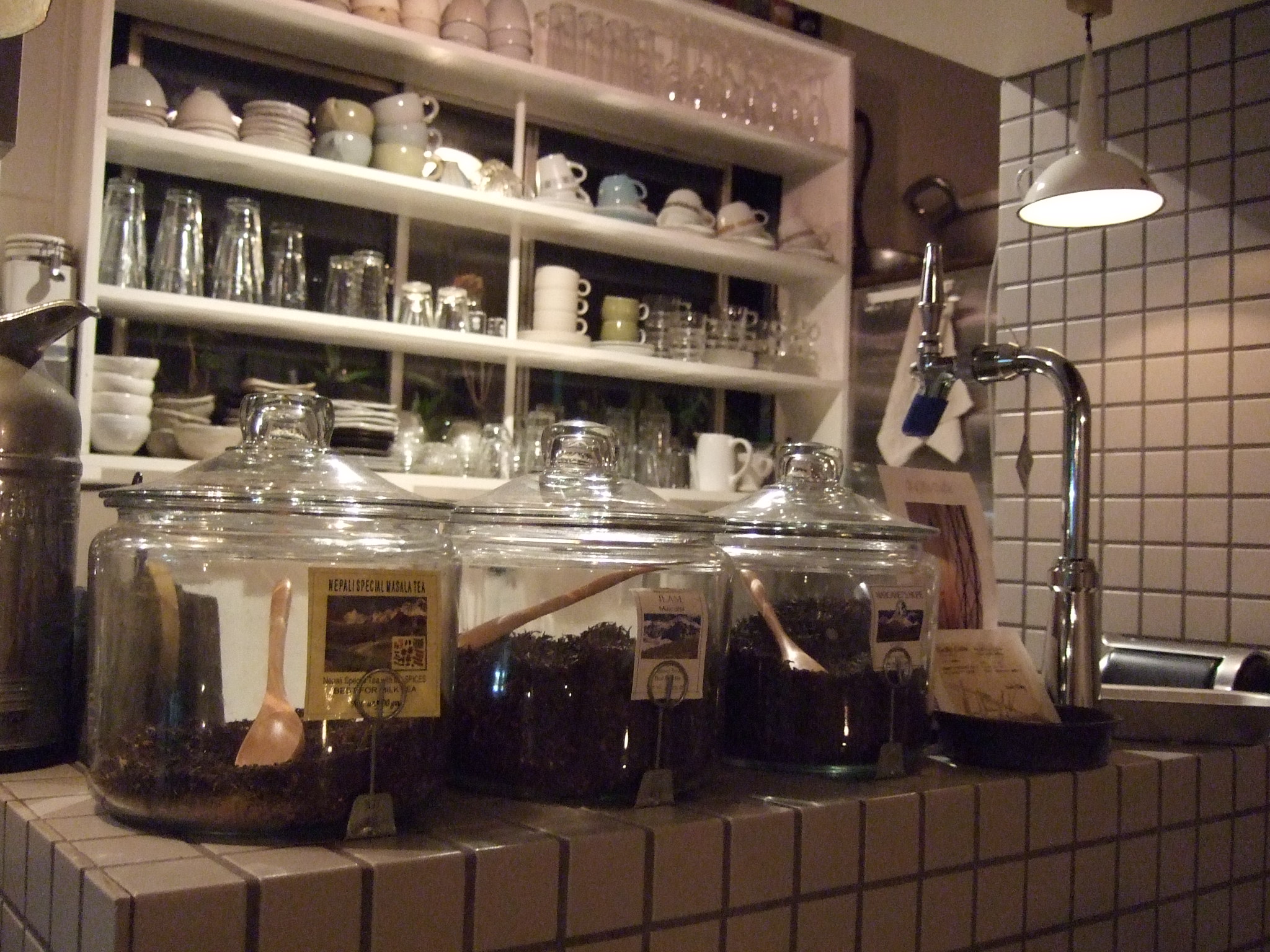 カウンターには珍しいネパールの紅茶も。お二人の選んだ素敵な器がぎっしり!