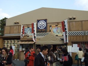 境内の左手後ろに現れた芝居小屋です。