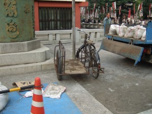 不思議なサイドリヤカー付き(?)自転車。レトロでかわいかった。