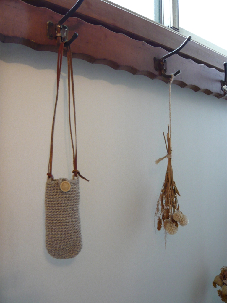 こちらは麻で出来た小物入れ。首に下げることもできるそうです。